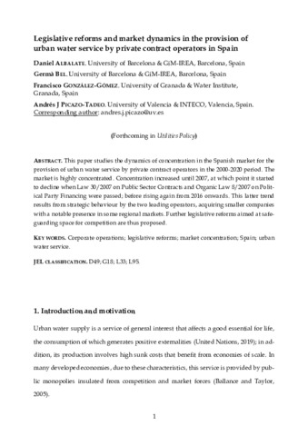 | Title: | Legislative reforms and market dynamics in the provision of urban water service by private contract operators in Spain |