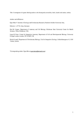 | Title: | Convergence of Aquatic Feeding Modes in the Sauropsida (Crocodiles, Birds, Lizards, Snakes and, Turtles) |