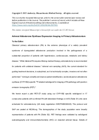 Adrenal Aldosterone Synthase Expression Imaging in Primary Aldosteronism.