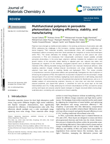 | Title: | Multifunctional polymers in perovskite photovoltaics: bridging efficiency, stability, and manufacturing |