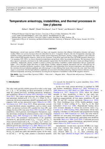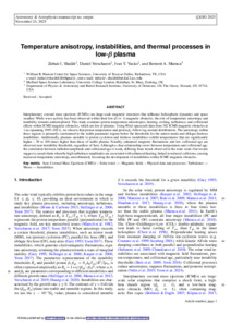 Temperature anisotropy, instabilities, and thermal processes in low-β plasma.