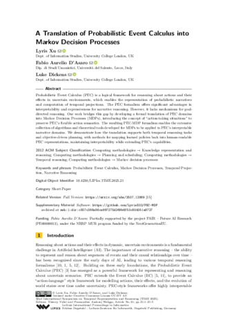 | Title: | A Translation of Probabilistic Event Calculus into Markov Decision Processes |