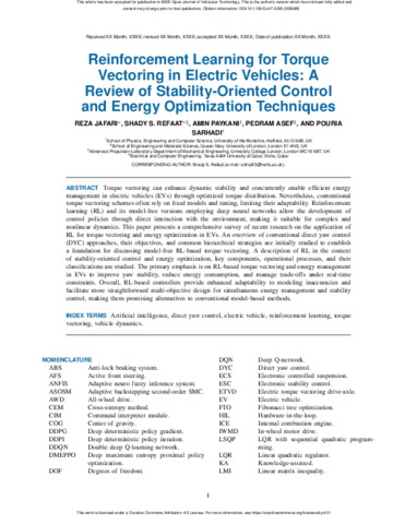 | Title: | Reinforcement Learning for Torque Vectoring in Electric Vehicles: A Review of Stability-Oriented Control and Energy Optimization Techniques |