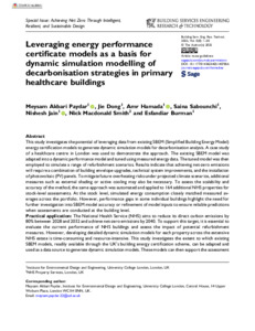 | Title: | Leveraging energy performance certificate models as a basis for dynamic simulation modelling of decarbonisation strategies in primary healthcare buildings |