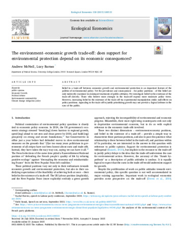 | Title: | The environment-economic growth trade-off: does support for environmental protection depend on its economic consequences? |
