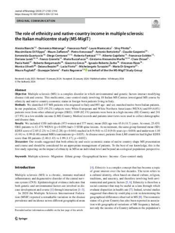 | Title: | The role of ethnicity and native-country income in multiple sclerosis: the Italian multicentre study (MS-MigIT) |