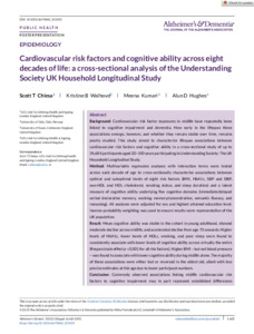 | Title: | Cardiovascular risk factors and cognitive ability across eight decades of life: a cross-sectional analysis of the Understanding Society UK Household Longitudinal Study |