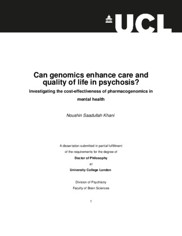 | Title: | Can genomics enhance care and quality of life in psychosis? Investigating the cost-effectiveness of pharmacogenomics in mental health. |