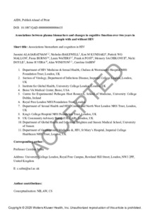 | Title: | Associations between plasma biomarkers and changes in cognitive function over two years in people with and without HIV |