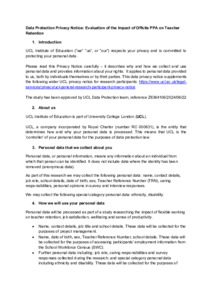| Title: | Data Protection Privacy Notice: Evaluation of the Impact of Offsite PPA on Teacher Retention |