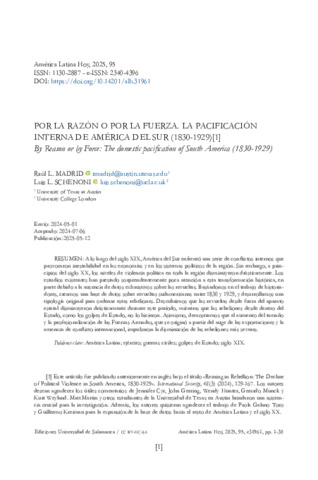 | Title: | Por la Razón o por la Fuerza. La pacificación interna de América del Sur (1830-1929) // By Reason or by Force: The domestic pacification of South America (1830-1929) |