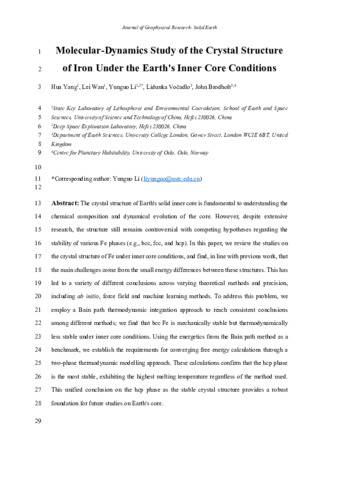 Vocadlo_JGR Solid Earth - 2026 - Yang - Molecular‐Dynamics Study of the Crystal Structure of Iron Under the Earth s Inner Core.pdf Access restricted to UCL open access staff until 21 July 2026. Download (3MB) |