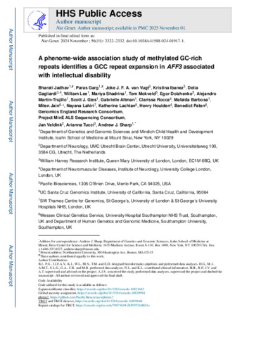 A phenome-wide association study of methylated GC-rich repeats identifies a GCC repeat expansion in AFF3 associated with intellectual disability.