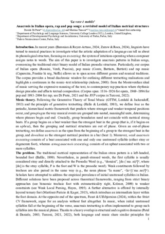 | Title: | 'La voce è mobile'. Anacrusis in Italian opera, rap and pop songs: a revisited model of Italian metrical structures |