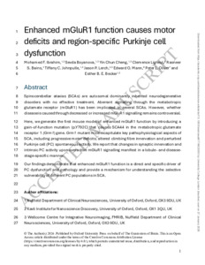 | Title: | Enhanced mGluR1 function causes motor deficits and region-specific Purkinje cell dysfunction |