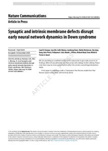 | Title: | Synaptic and intrinsic membrane defects disrupt early neural network dynamics in Down syndrome |