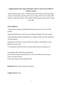 Mapping Regional Brain Aging in Huntington's Disease Using Structural Magnetic Resonance Imaging and Machine Learning.
