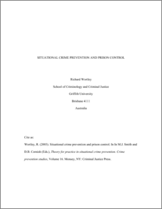 Additional information: | This version is the author accepted manuscript. For information on re-use, please refer to the publisher’s terms and conditions. From: Theory for Practice in Situational Crime Prevention, edited by Martha J. Smith and Derek B. Cornish. Copyright © 2003 by Lynne Rienner Publishers, Inc. Used with permission of the publisher. |