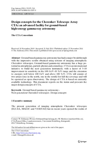 Title: | Design concepts for the Cherenkov Telescope Array CTA: an advanced facility for ground-based high-energy gamma-ray astronomy |