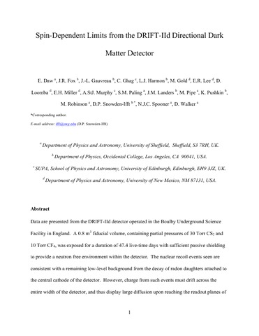Title: | Spin-dependent limits from the DRIFT-IId directional dark matter detector |