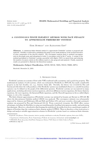 Title: | A continuous finite element method with face penalty to approximate Friedrichs' systems |