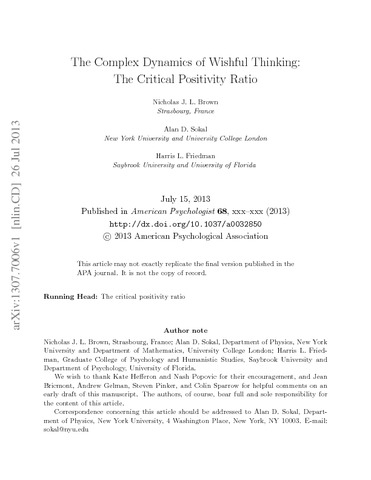 | Title: | The Complex Dynamics of Wishful Thinking The Critical Positivity Ratio |