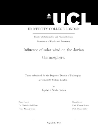 | Title: | Influence of solar wind on the Jovian thermosphere. |