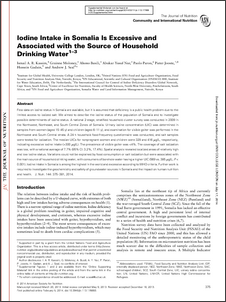 Title: | Iodine Intake in Somalia Is Excessive and Associated with the Source of Household Drinking Water. |