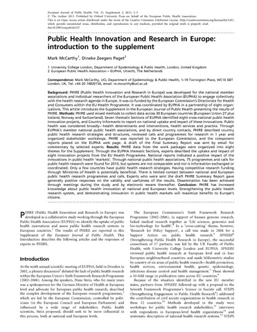 | Title: | Public Health Innovation and Research in Europe: introduction to the supplement |