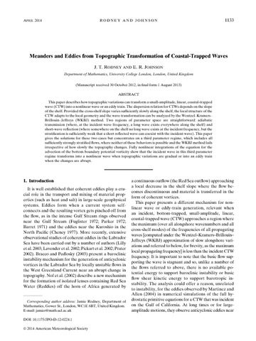 Title: | Meanders and eddies from topographic transformation of coastal-trapped waves |