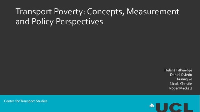 Title: | Transport Poverty: Concepts, Measurement and Policy Perspectives |