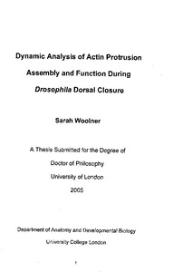 | Title: | Dynamic analysis of actin protrusion assembly and function during Drosophila dorsal closure |