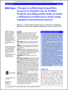 | Title: | Changes in addressing inequalities in access to hospital care in Andhra Pradesh and Maharashtra states of India: a difference-in-differences study using repeated cross-sectional surveys |