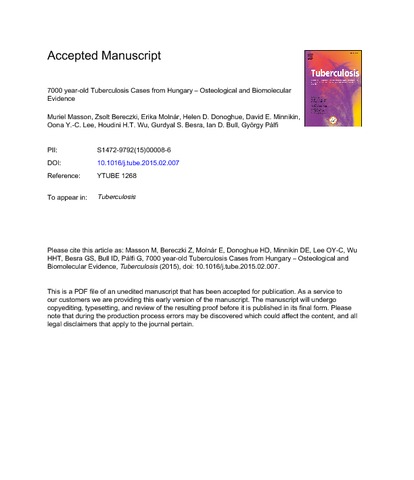 | Title: | 7000 year-old Tuberculosis Cases from Hungary – Osteological and Biomolecular Evidence |