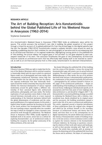 | Title: | The Art of Building Reception: Aris Konstantinidis behind the Global Published Life of his Weekend House in Anavyssos (1962–2014) |