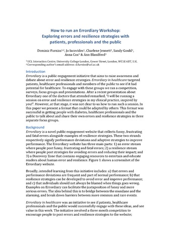 Title: | How to run an Errordiary workshop: Exploring errors and resilience strategies with patients, professionals and the public |