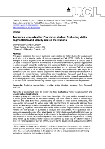 Dawson_Dawson Jensen_Towards 'contextual turn' in visitor studies FINAL_template.pdf Download (375kB) | Preview |