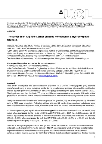 Title: | The effect of an alginate carrier on bone formation in a hydroxyapatite scaffold. |