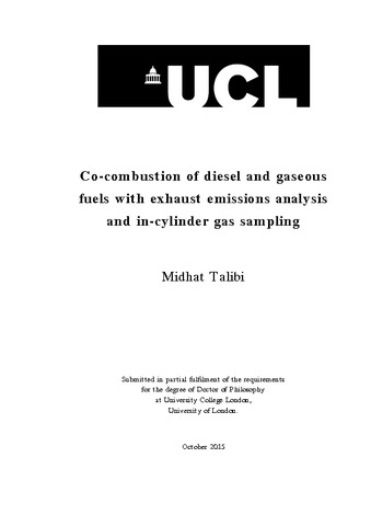 Title: | Co-combustion of diesel and gaseous fuels with exhaust emissions analysis and in-cylinder gas sampling |