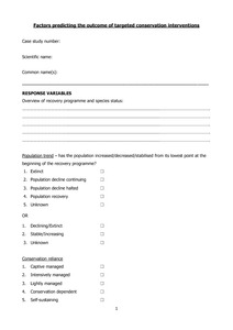 Title: | A comparative approach to assess drivers of success in mammalian conservation recovery programmes |