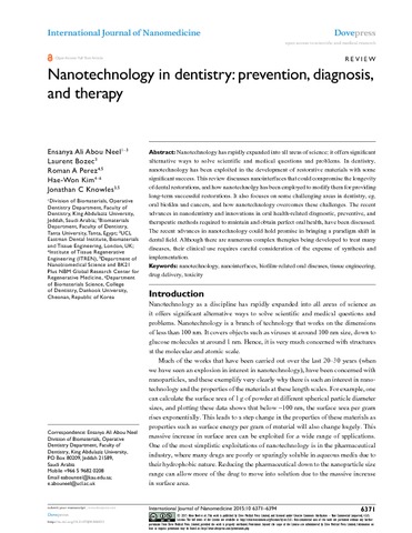 | Title: | Nanotechnology in dentistry: prevention, diagnosis, and therapy |