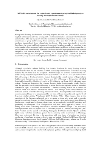 Title: | Self-build communities: the rationale and experiences of group-build (Baugruppen) housing development in Germany |