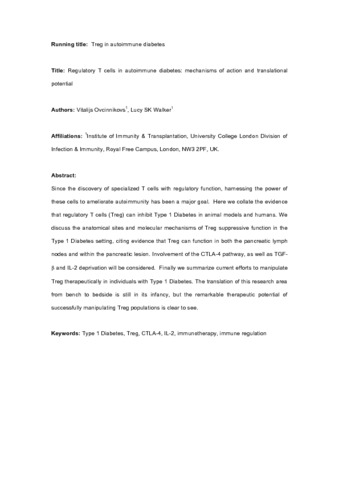 | Title: | Regulatory T Cells in Autoimmune Diabetes: Mechanisms of Action and Translational Potential |