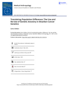 | Title: | Translating Population Difference: The Use and Re-Use of Genetic Ancestry in Brazilian Cancer Genetics |