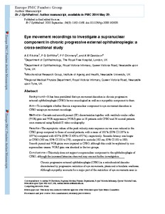 | Title: | Eye movement recordings to investigate a supranuclear component in chronic progressive external ophthalmoplegia: a cross-sectional study |