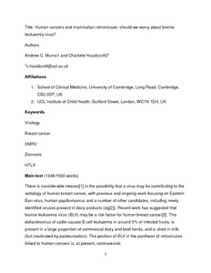 Title: | Human cancers and mammalian retroviruses: should we worry about bovine leukemia virus? |