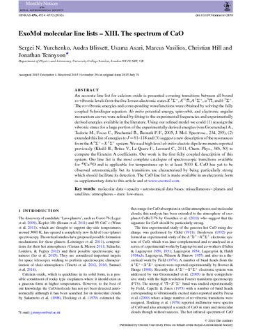 Title: | ExoMol molecular line lists - XIII. The spectrum of CaO |