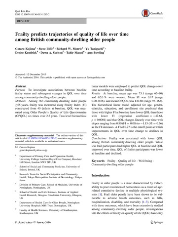 | Title: | Frailty predicts trajectories of quality of life over time among British community-dwelling older people |