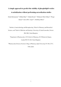 Title: | A simple approach to predict the stability of phospholipid vesicles to nebulization without performing aerosolization studies |
