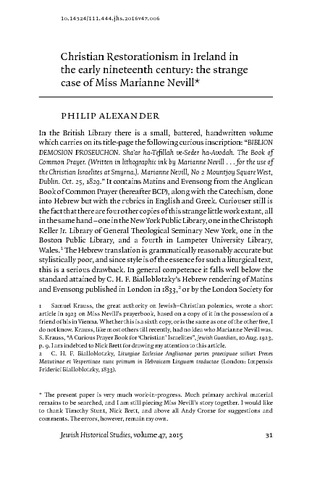| Title: | Christian Restorationism in Ireland in the early nineteenth century: the strange case of Miss Marianne Nevill |